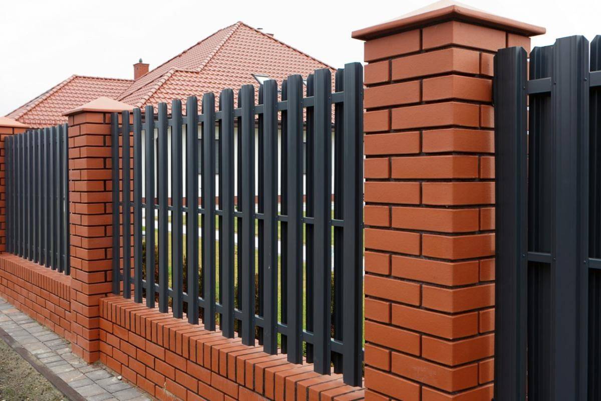 Заборы и ограждения из евроштакетника с кирпичными столбами 6 соток в Александрове