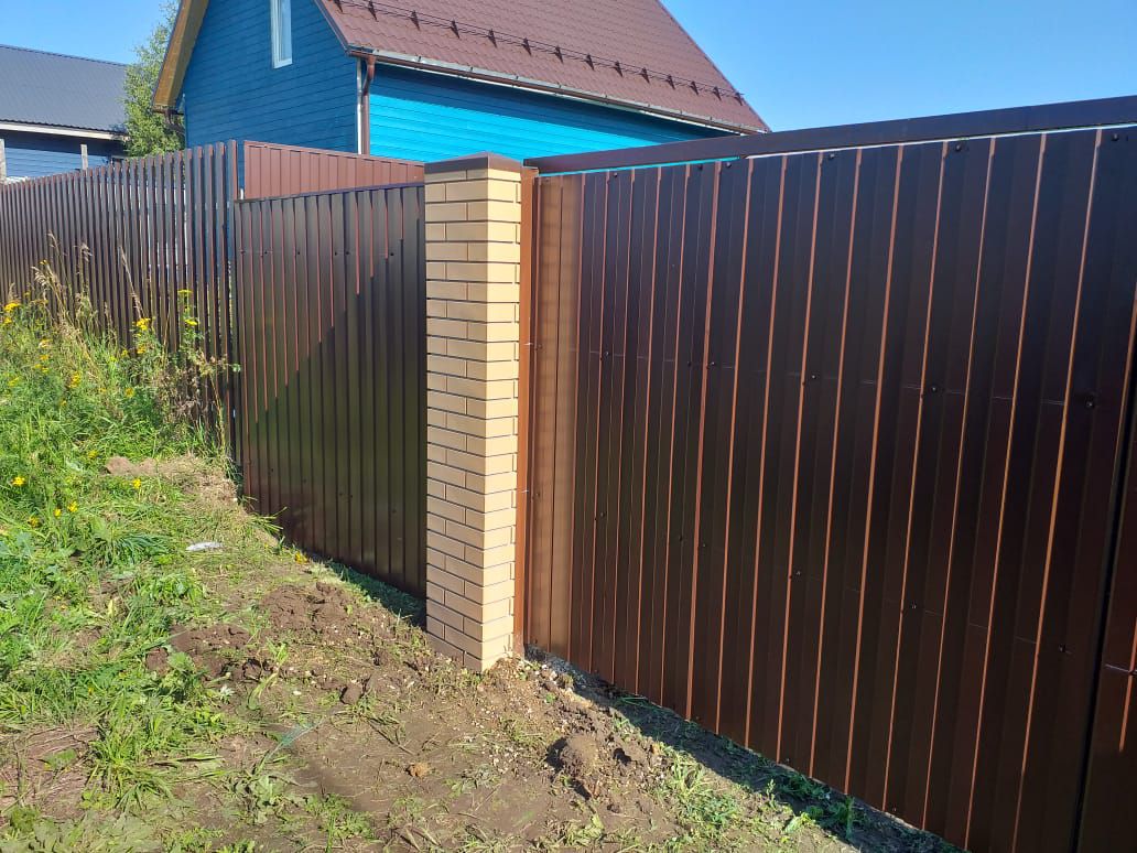 Заборы и ограждения из профнастила с кирпичными столбами 50 метров в Александрове