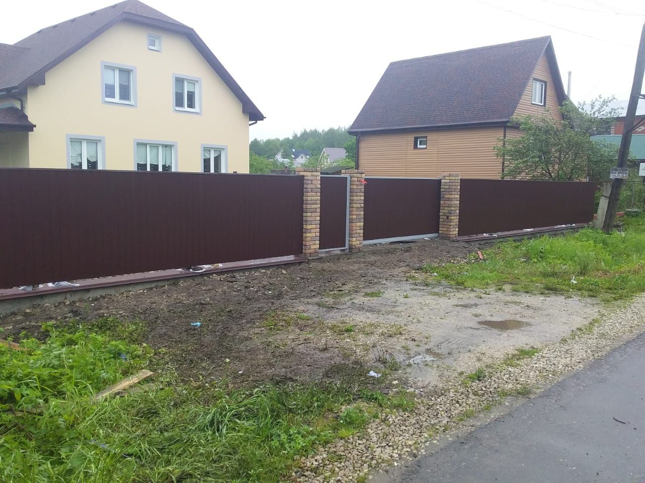 Заборы и ограждения из профнастила с кирпичными столбами 30 соток в Александрове